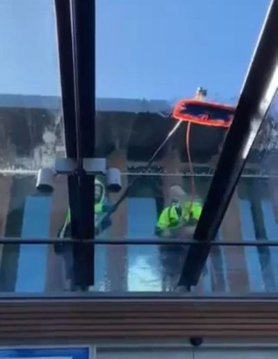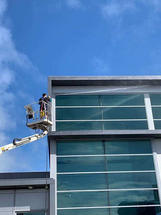 We operate elevated work platforms to reach the higher areas and use specialised cleaning methods.