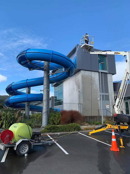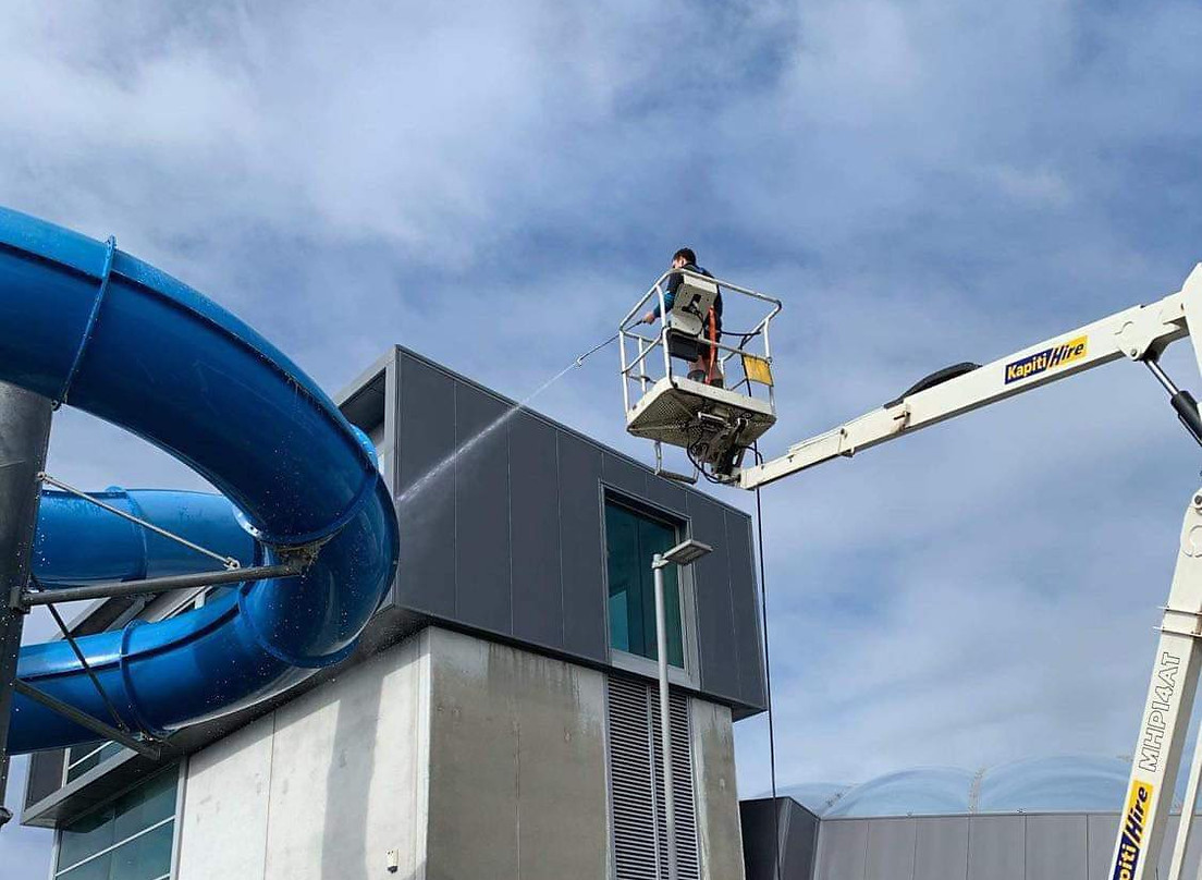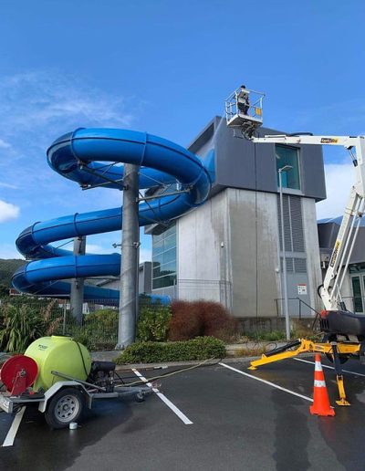 Ōtaki Pool is one of our annual cleaning jobs that involves building wash, window cleaning, specialty slide cleaning and glass canopy cleaning.
